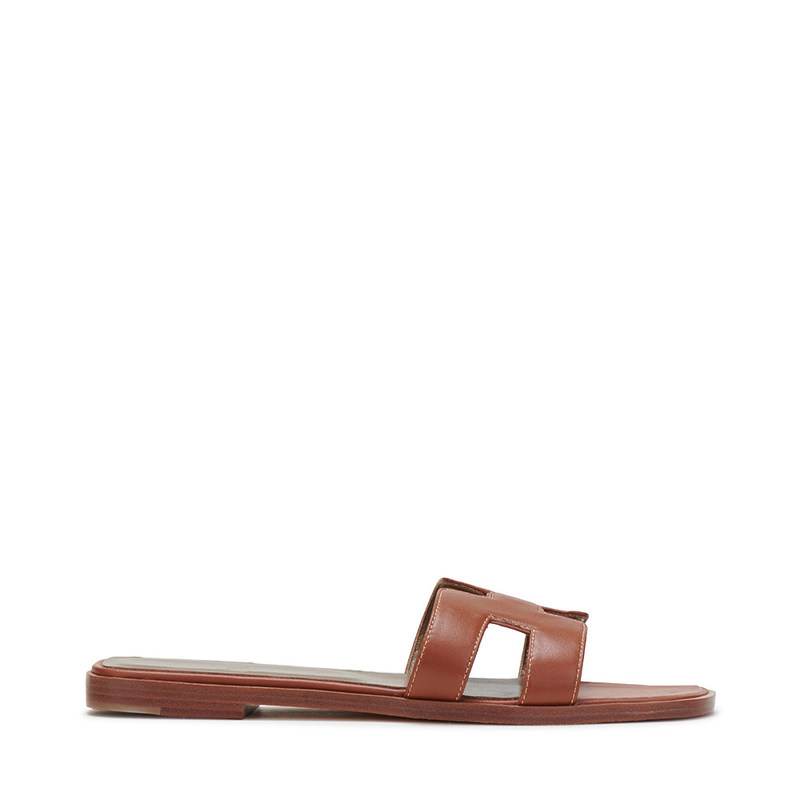 夏のファッション ブラウン牛皮 女性 フラットサンダル